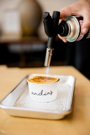 Get a taste of our infamous ice cream brûlées: a cup of French Vanilla topped with sugar and torched to a perfect crisp right in front of you!