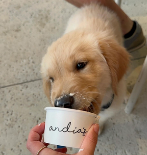 Dogs deserve award-winning ice cream too. Que our Nanny Goat pup cup: a 1-oz scoop of our French Vanilla ice cream with 2 Milk Bones!